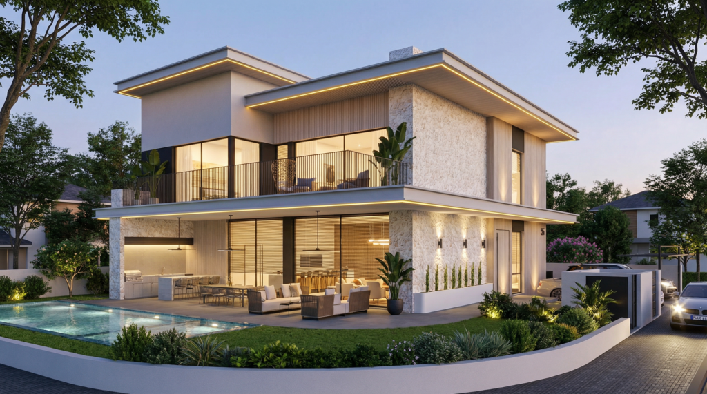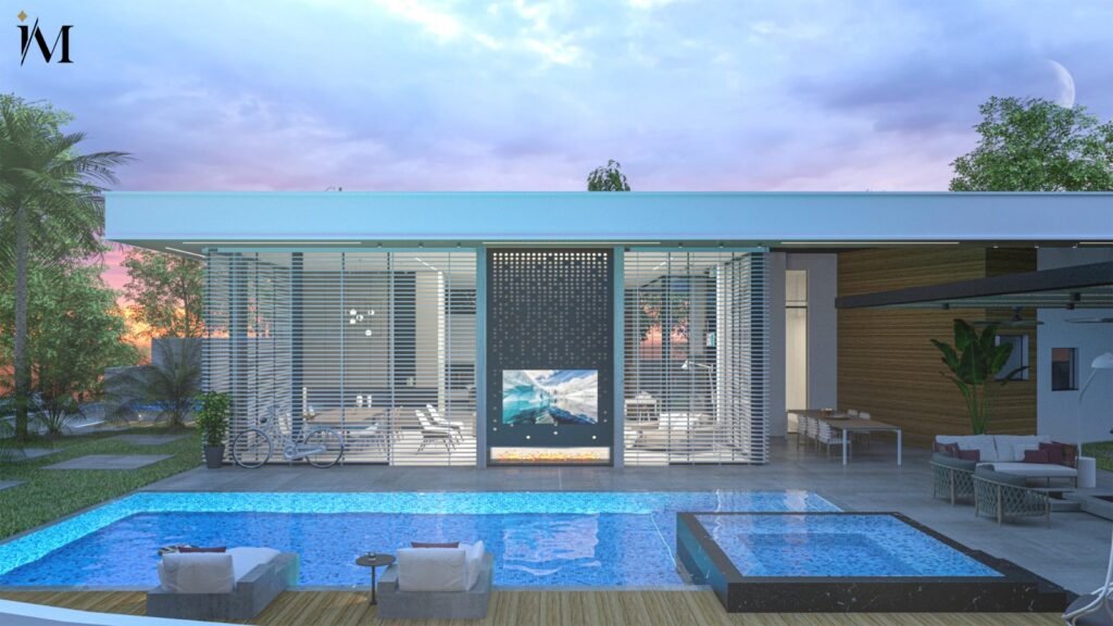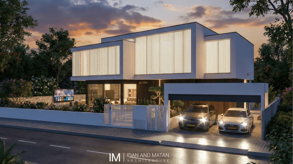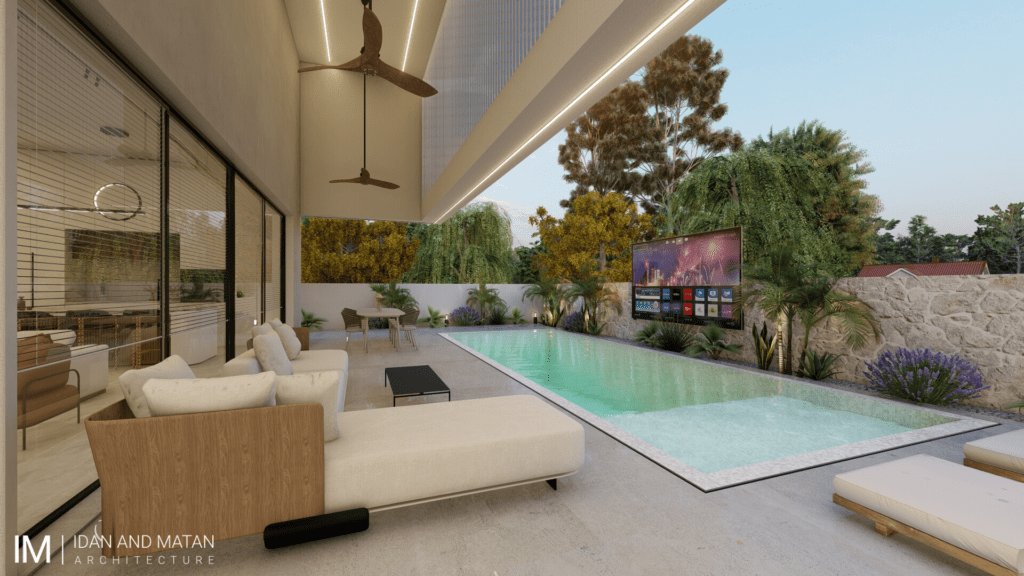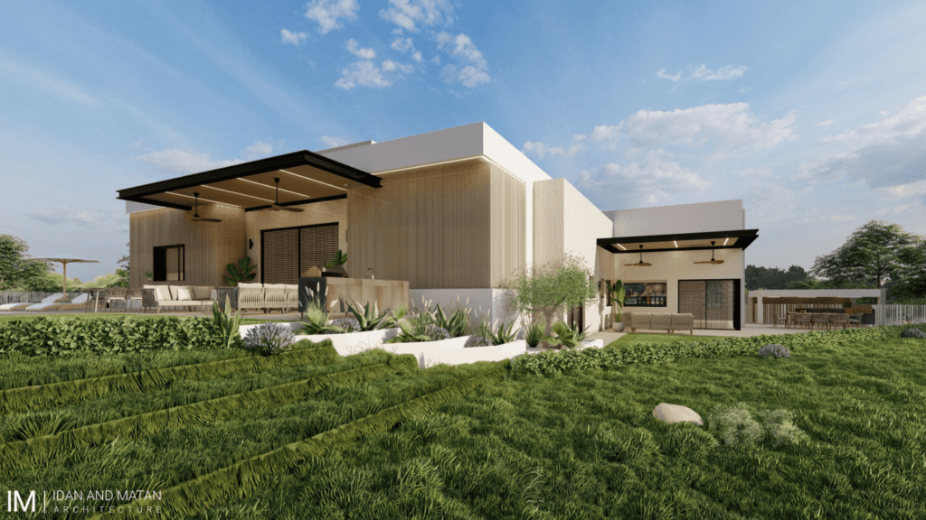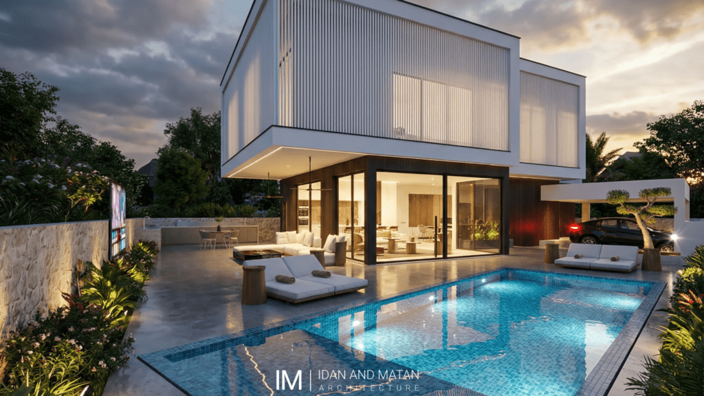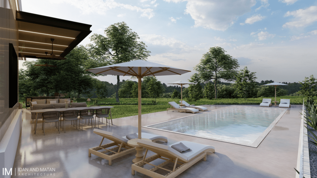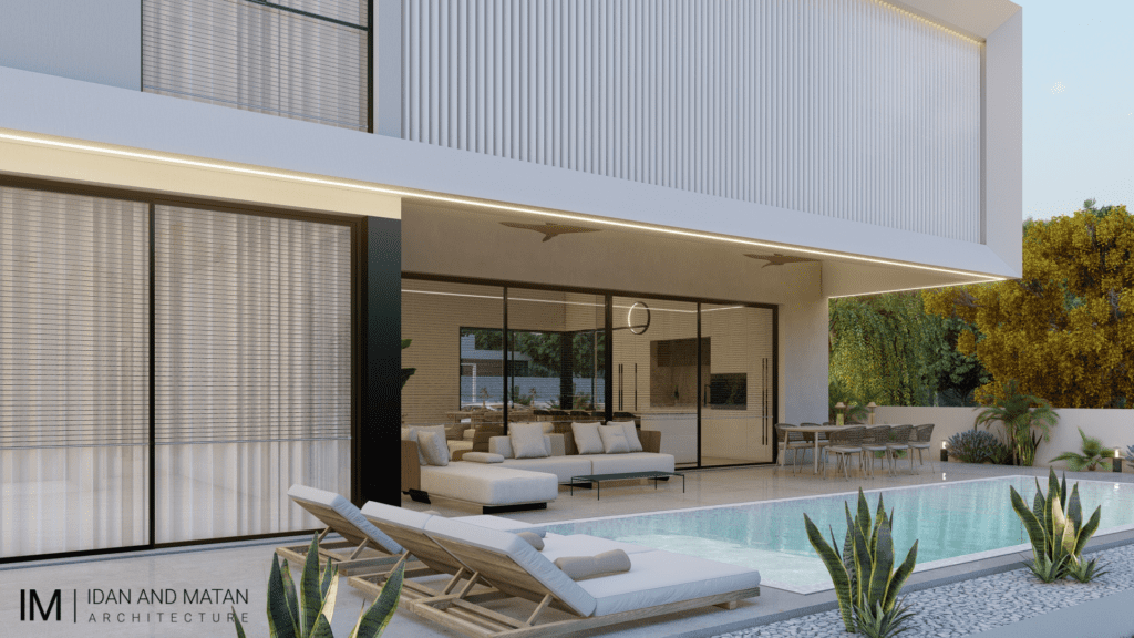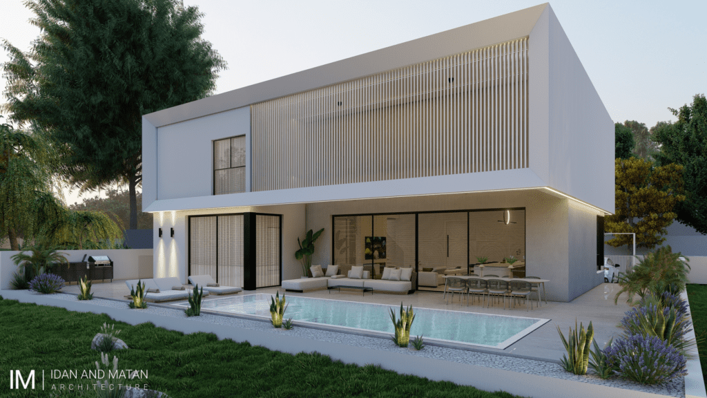 תכנון וילה דו משפחתית + בריכה שחיה לאבא ובן . מיקום: מושב ביצרון מגרש 1 דונם | בנוי 400 מ”ר.