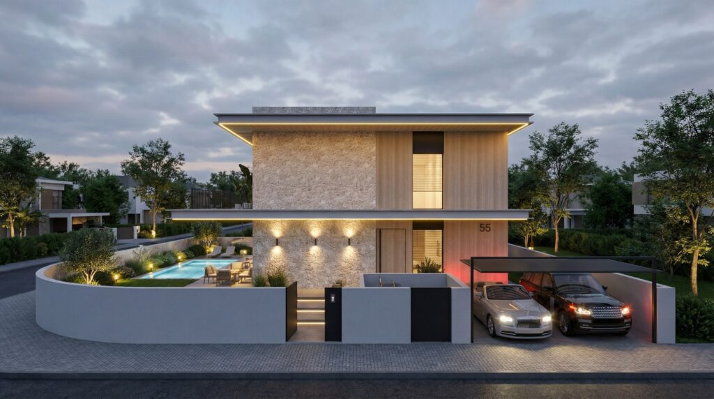 תכנון וילה ב-2 קומות עם בריכת שחיה וחניה מקורה. מיקום: כלניות , באר שבע מגרש 470 מ”ר | בנוי 232 מ”ר