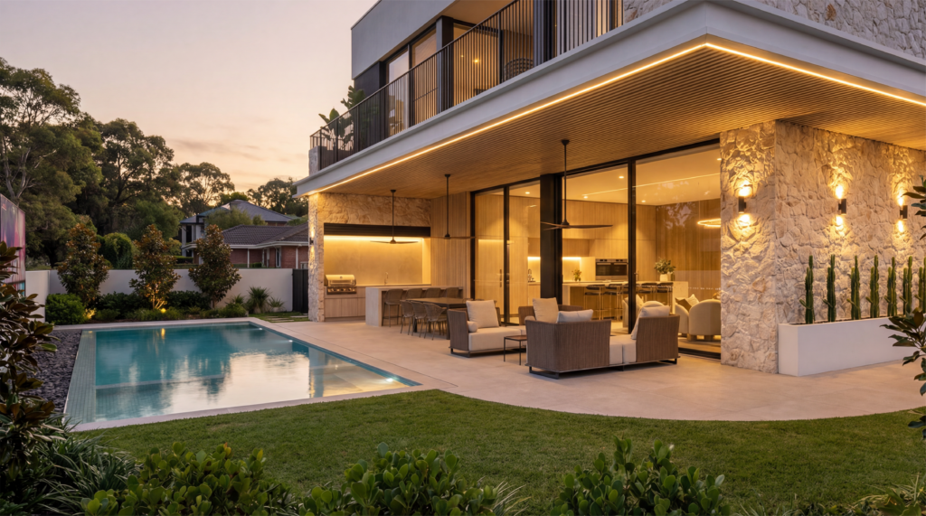 תכנון וילה ב2 מפלסים , חדר כושר פרטי ובריכת זרמים מקצועית עם כיסוי ריצפת דק חשמלית מיקום: עומר מגרש 500 מ”ר| בנוי 220 מ”ר